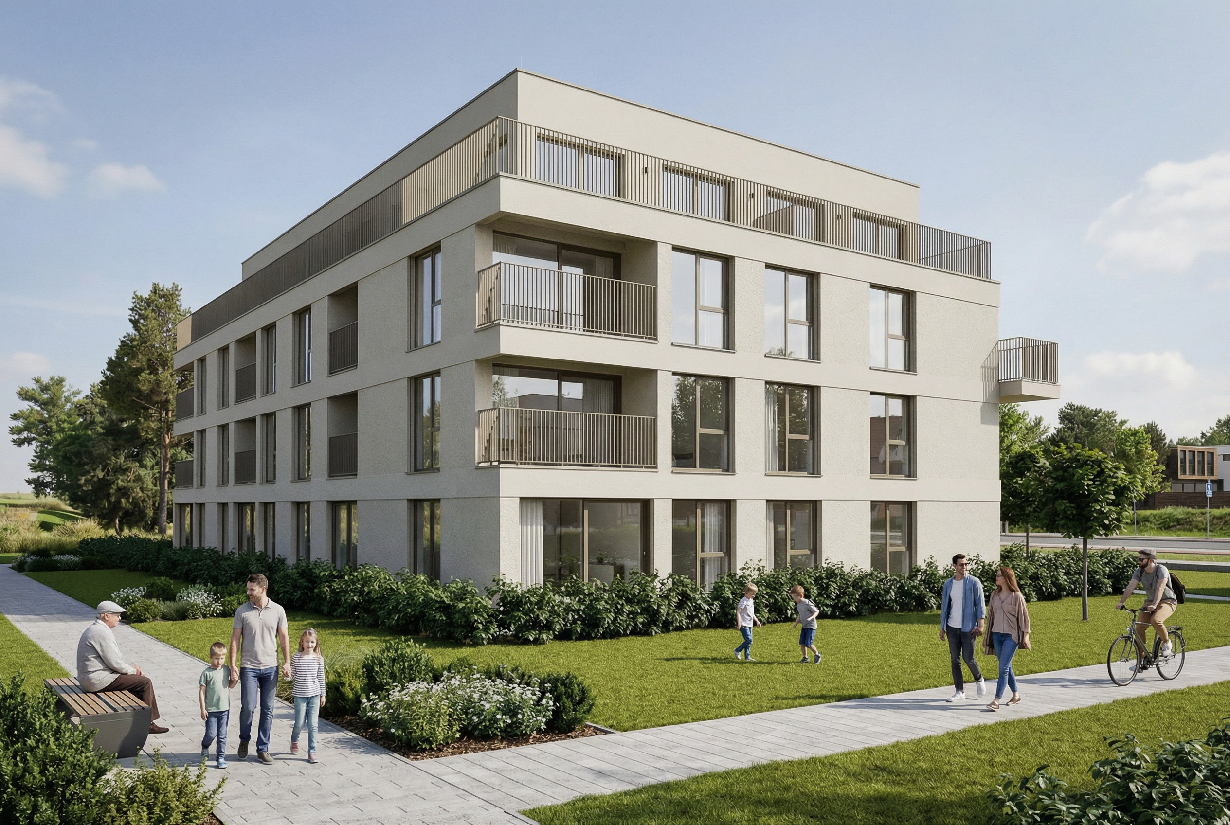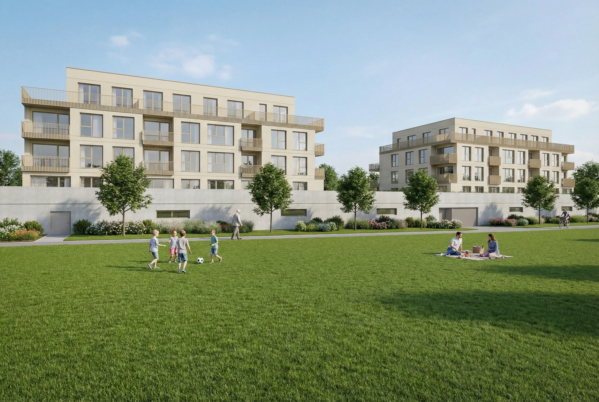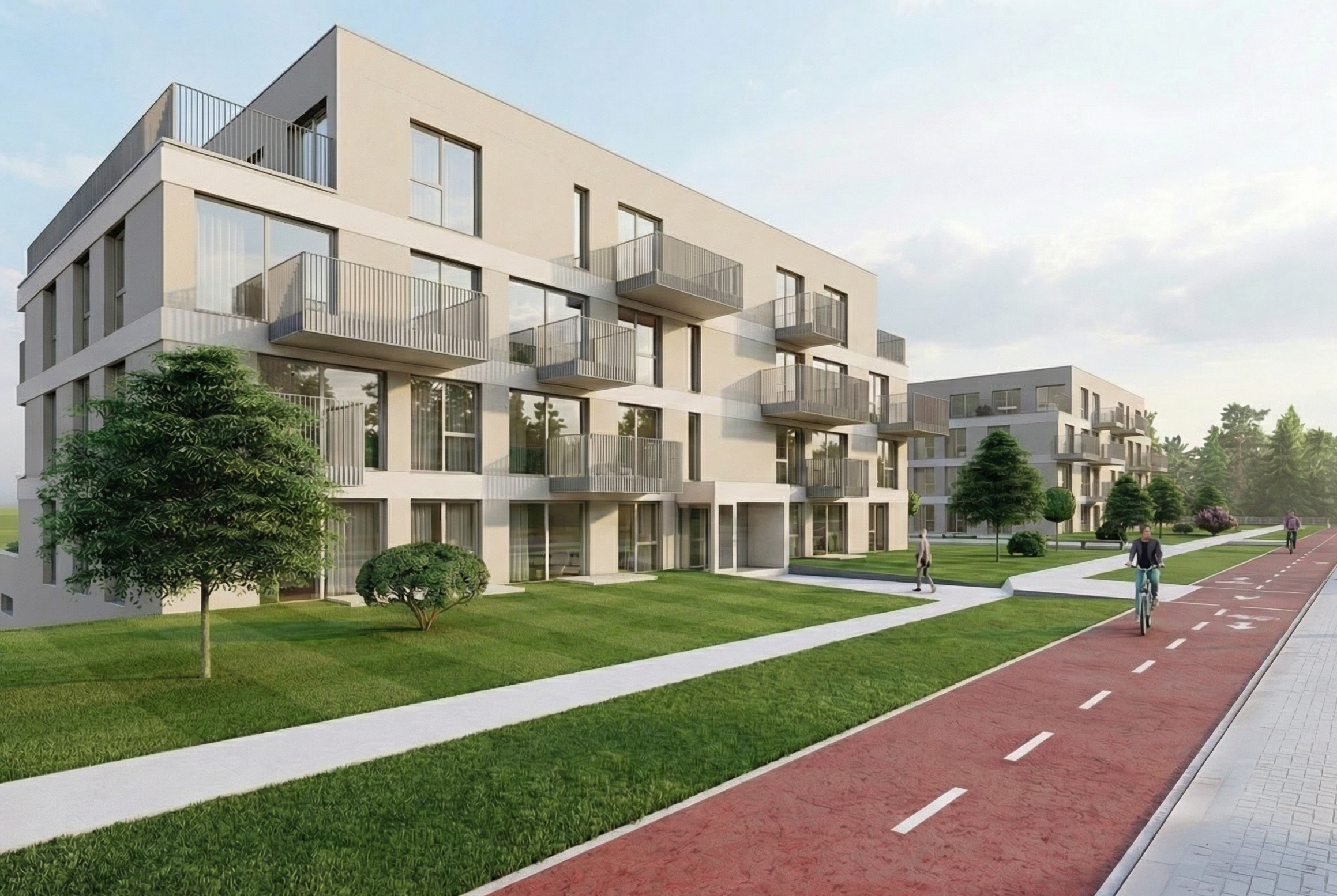 Projekt dveh med seboj povezanih objektov s podzemno garažo in dvigalom. Stanovanja različnih tipov so zasnovana funkcionalno in svetlo, vsaka enota pa ima lastno toplotno črpalko, talno ogrevanje in rekuperator. Soseska nastaja kot celovito urejeno novo območje z novo infrastrukturo, parkirnimi površinami, zelenimi ureditvami in sodobno komunalno opremo.