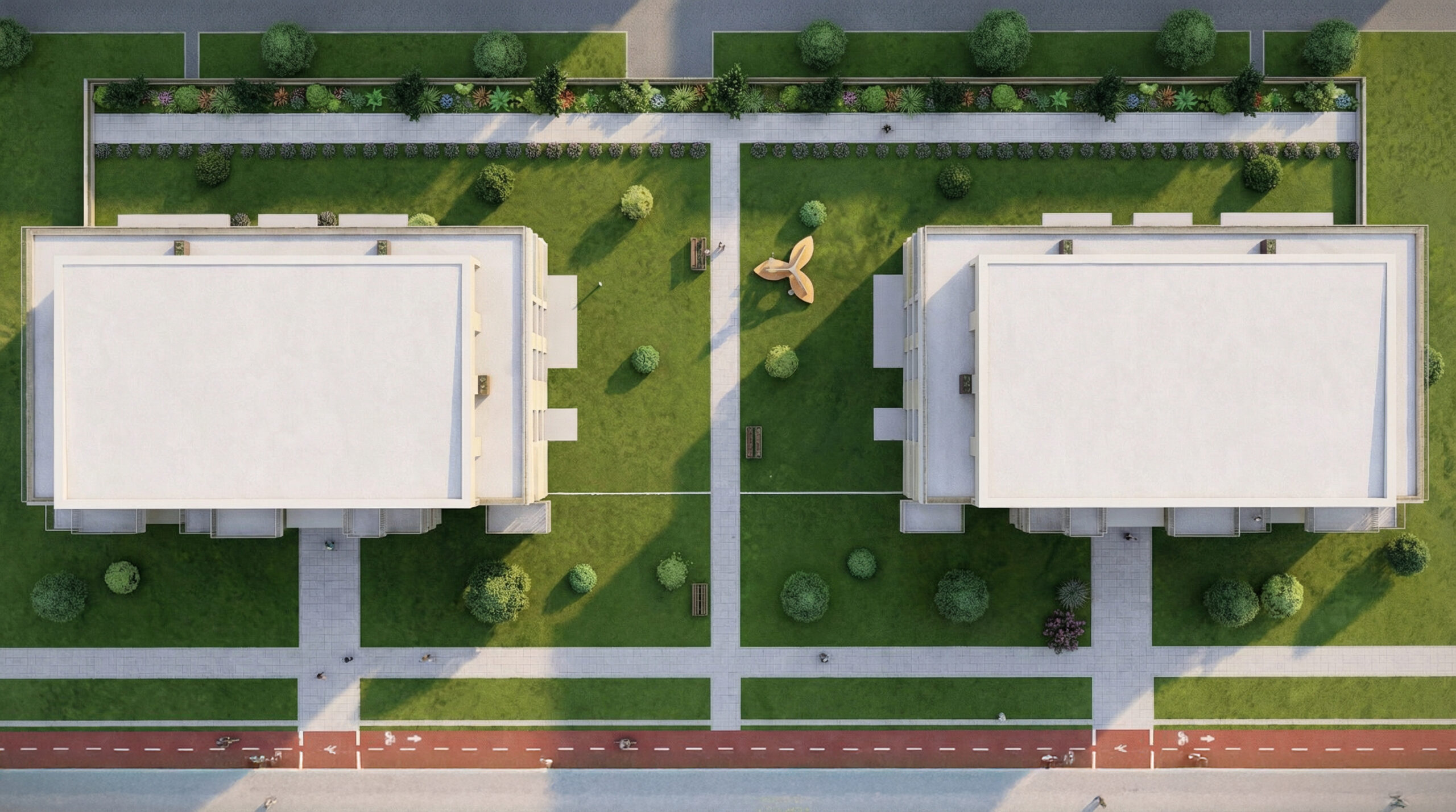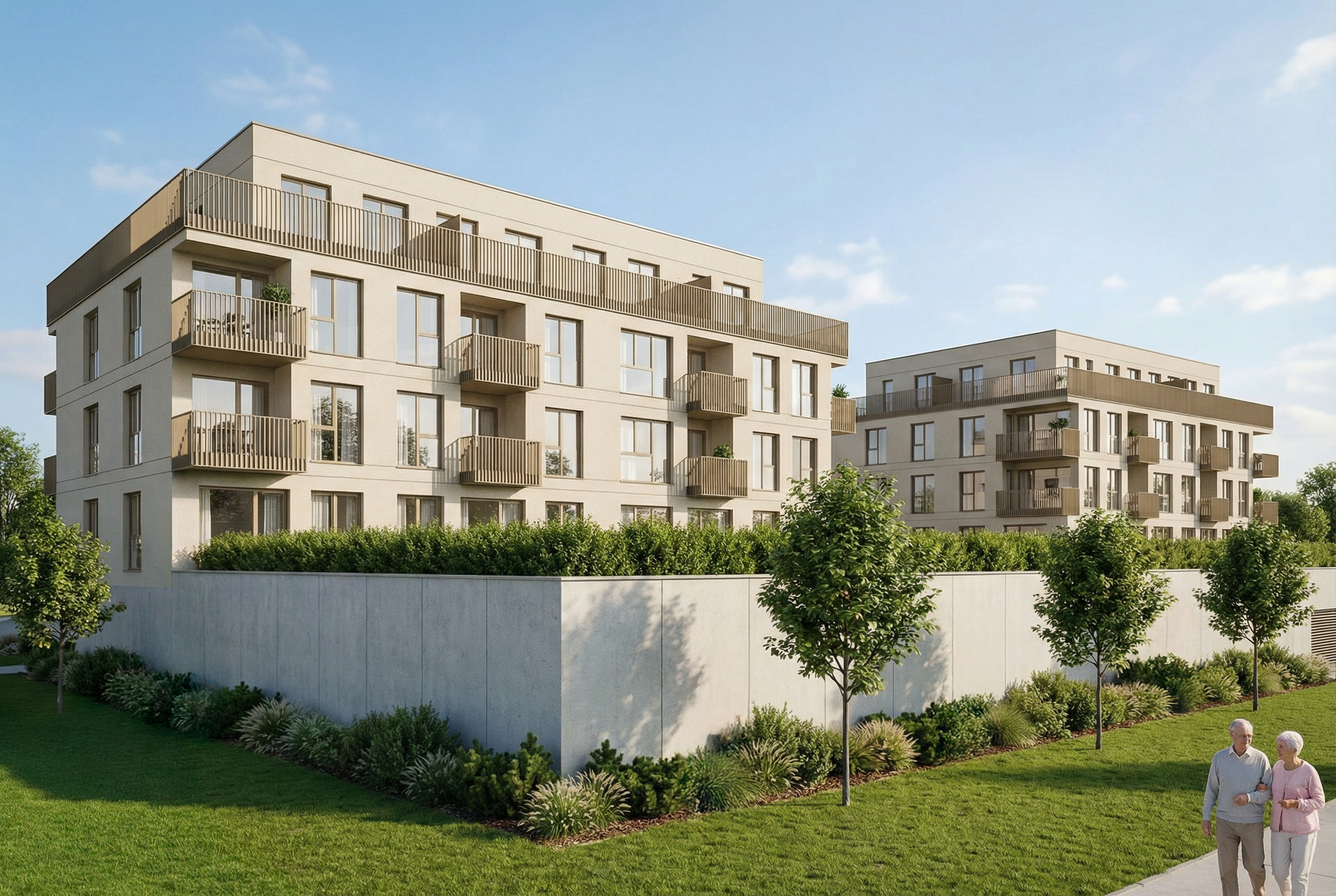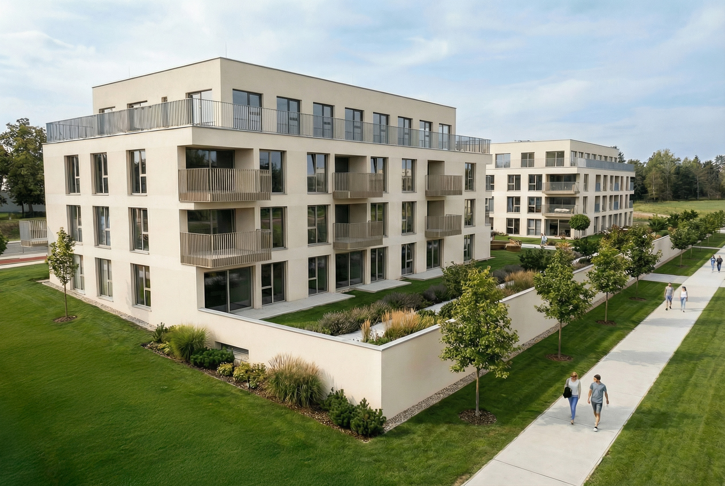 Projekt dveh med seboj povezanih objektov s podzemno garažo in dvigalom. Stanovanja različnih tipov so zasnovana funkcionalno in svetlo, vsaka enota pa ima lastno toplotno črpalko, talno ogrevanje in rekuperator. Soseska nastaja kot celovito urejeno novo območje z novo infrastrukturo, parkirnimi površinami, zelenimi ureditvami in sodobno komunalno opremo.
