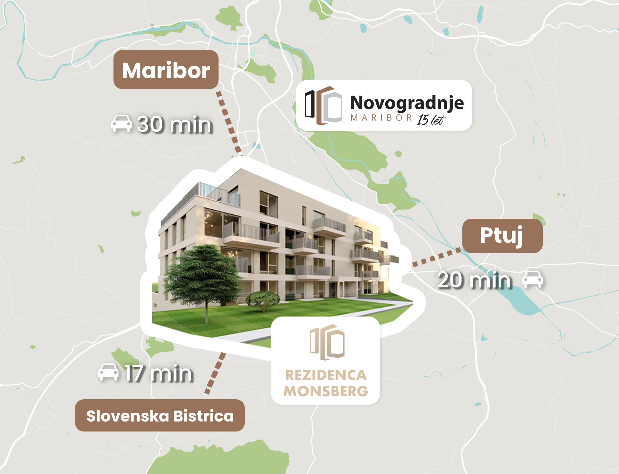 Premišljeno zasnovana stavba združuje sodobne arhitekturne rešitve, kar omogoča nižje obratovalne stroške in trajnostno naravnano bivanje. Rezidenca Monsberg predstavlja pomembno pridobitev za občino Majšperk ter prispeva k razvoju novih stanovanjskih kapacitet in dvigu kakovosti bivanja v kraju.