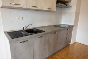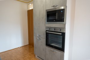 Stanovanje je že opremljeno z novo kuhinjo, ostali prostori bodo opremljeni do konca meseca aprila.
